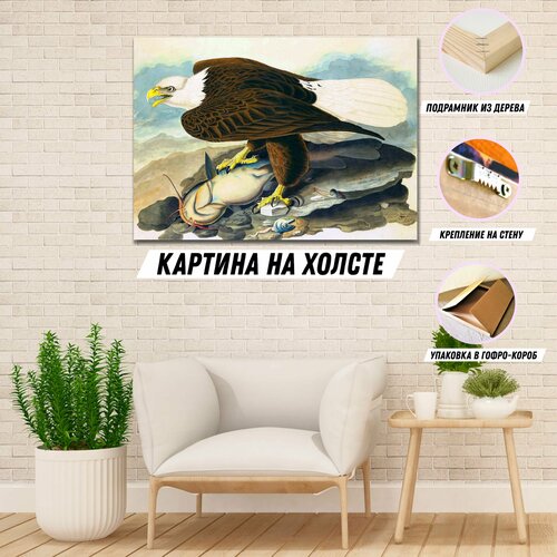 Картина на холсте Орел из книги Американские птицы Джон Джеймс Одюбон постер для интерьера 40*60