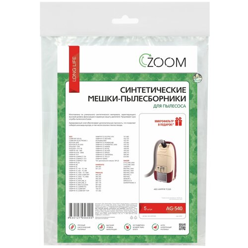 Синтетические мешки-пылесборники ZOOM AG-540 для пылесоса, 5 шт+ микрофильтр для пылесоса