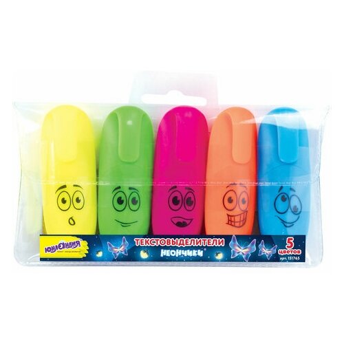 Набор текстовыделителей юнландия 5 шт, комплект 5 шт, мини, ассорти, "неончики", линия 1-5 мм, 151765