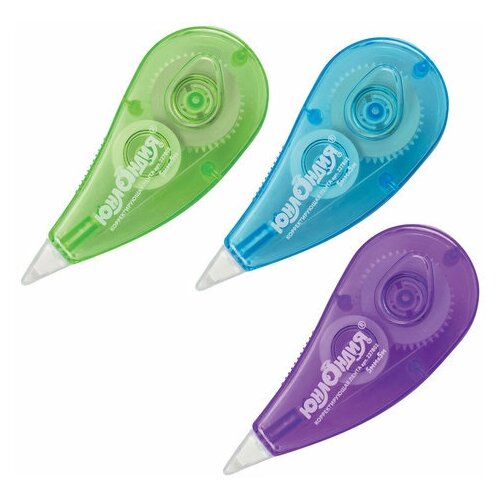 Корректирующая лента юнландия "капля", комплект 100 шт, 5 мм х 5 м, корпус ассорти, блистер, 227802
