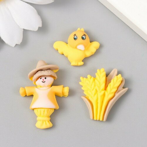 Декор для творчества пластик "Пугало, цыплёнок и пшеница" набор 3 шт