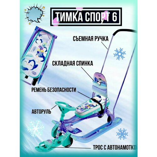 Снегокат Ника-SNOWPATROL рама зеленая со спинкой, трос авт. нам, велоруль