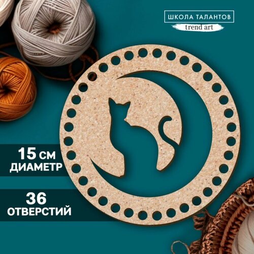 Донышко для вязания резное «Кошка на луне», круг 15 см, хдф 3 мм