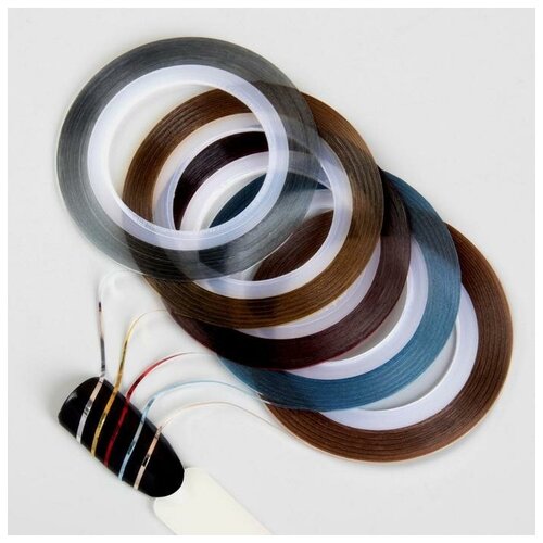 Ленты клеевые для декора, 5 шт, 1 мм, 18 м, разноцветные