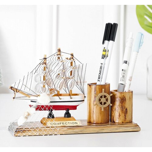 Деревянная парусная лодка с органайзером для ручек MyPads M-N1212 ручной работы красивый и недорогой подарок ребенку, мальчику, сыну, студенту, ш.