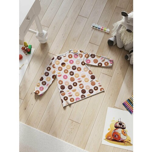 Фартук детский "Пончики с узорами" с рукавами для рисования от 1 до 2 лет.
