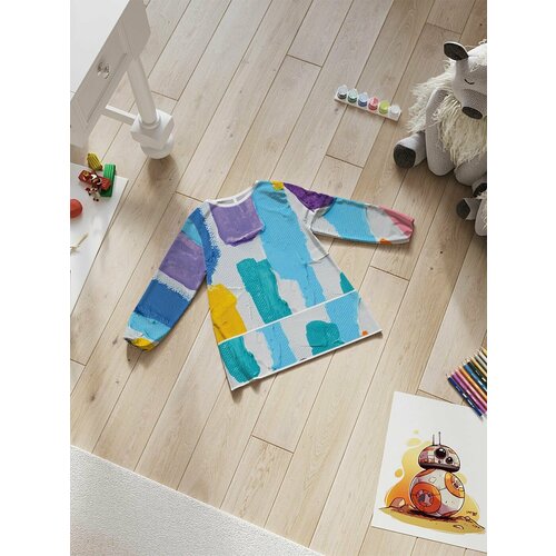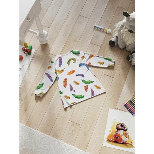 Фартук детский "Цветные перья" с рукавами для рисования от 1 до 2 лет.