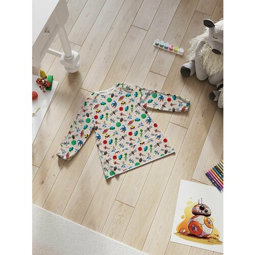Фартук детский "Космическая радость" с рукавами для рисования от 3 до 4 лет.