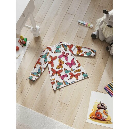 Фартук детский "Полет красочных бабочек" с рукавами для рисования от 3 до 4 лет.