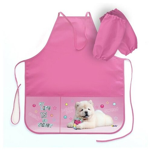 Фартук для труда + нарукавники, 535 х 445/240 х 145 мм, размер M (рост 122-158), ФН 41-1,"Футбол", синий, 69375 (комплект из 4 шт) золотистый, синий