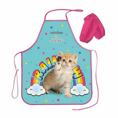 Фартук для труда + нарукавники, 490 x 390/190 x 135 мм, ФН 61-20 "Котёнок с радугой" 69406