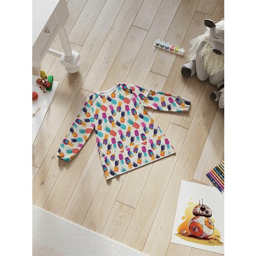 Фартук детский "Ананасы" с рукавами для рисования от 1 до 2 лет.