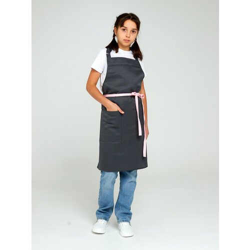 Фартук подростковый антрацит с розовыми завязками/фартук для уроков труда/кулинарии/творчества