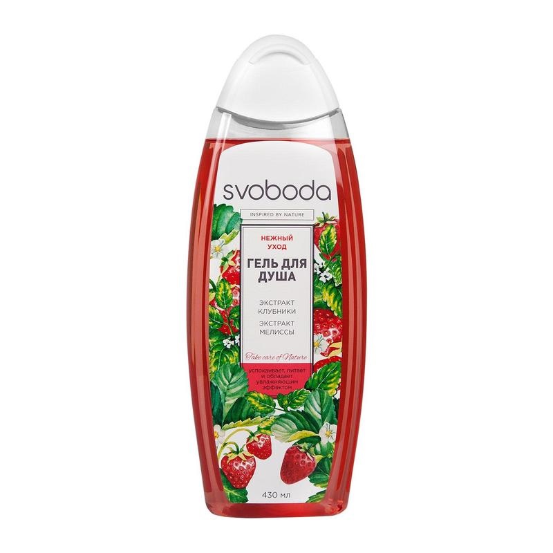 Гель для душа Свобода Нежный уход экстракт клубники и мелиссы 430 мл Svoboda
