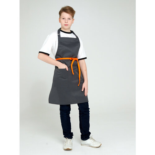 Фартук подростковый антрацит с оранжевыми завязками/фартук для уроков труда/кулинарии/творчества