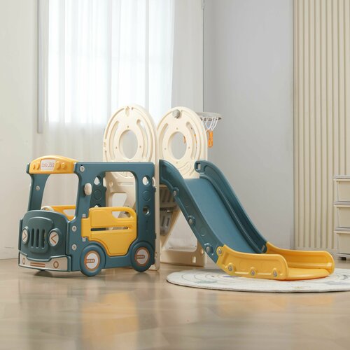 Игровой комплекс UNIX Kids Bus Yellow для детей с горкой, для дома и улицы, 171 см, желтый, синий