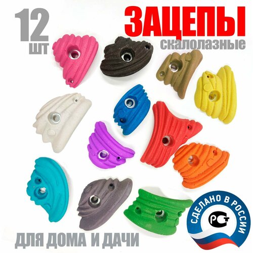 Зацепы для скалодрома МойДвор Разноцветные с крепежом Комплект 8шт