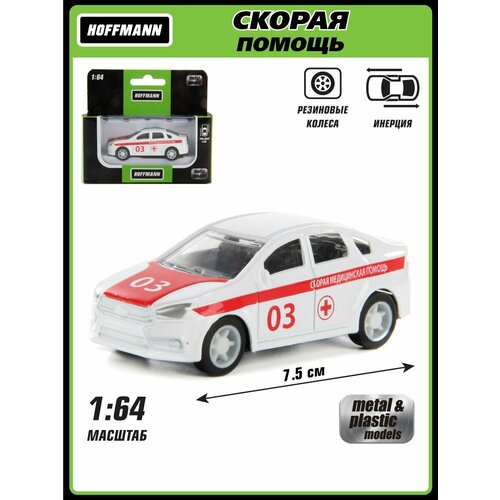 Машинка коллекционная металлическая Скорая помощь 1:64, Hoffmann / Детская инерционная игрушка для мальчиков / Игрушечный транспорт для детей, модель машины спецслужб