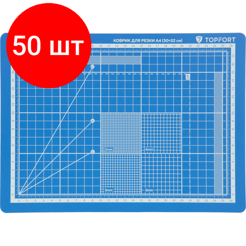 Комплект 50 штук, Коврик для резки TOPFORT 3х-слойный А4 (30х22см),2х-сторонний