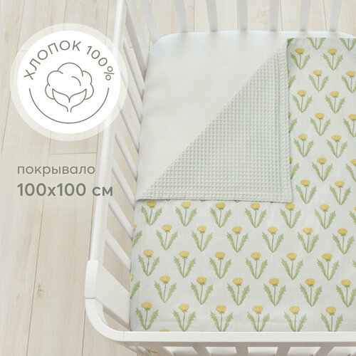 87553, Покрывало детское Happy Baby 100x100 см, детский плед двусторонний, из хлопка, на выписку, в коляску, зеленое