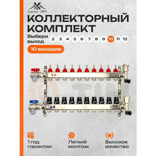 Коллектор для теплого пола на 10 контуров с расходомерами, кранами с термометрами до 120 кв/м
