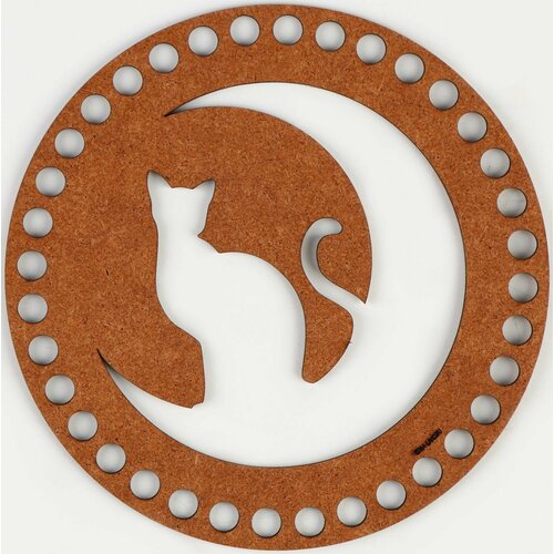 Донышко вязальное деревянное резное "Кошка на луне" круглое, длина 15 см, толщина 3 мм, хдф, для вязания, плетения корзинок и крышек, аксессуар для рукоделия