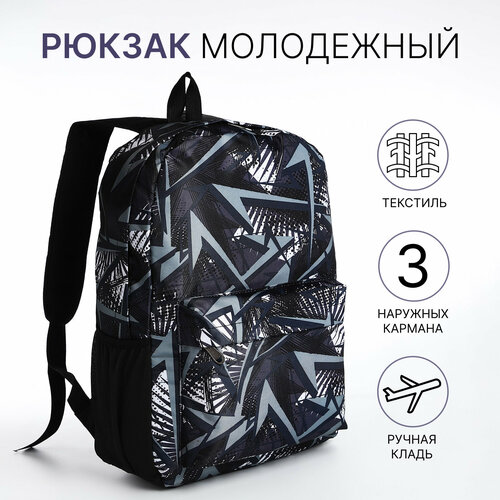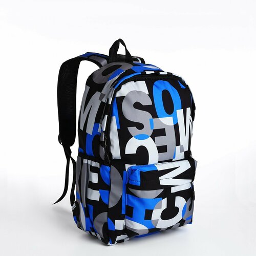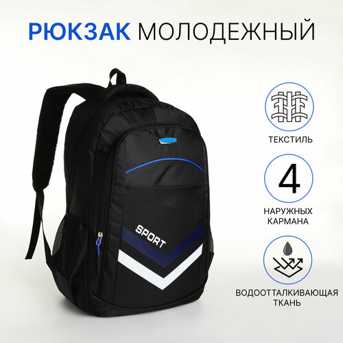 Рюкзак молодёжный на молнии, 4 кармана, цвет чёрный/синий