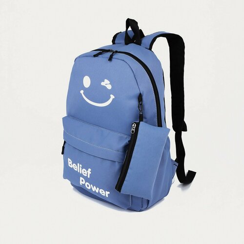 Рюкзак школьный из текстиля на молнии, 3 кармана, цвет синий