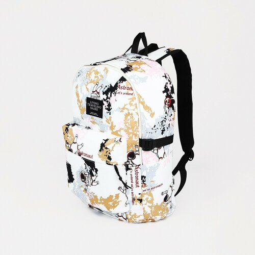 Рюкзак школьный из текстиля, 3 кармана,/бежевый