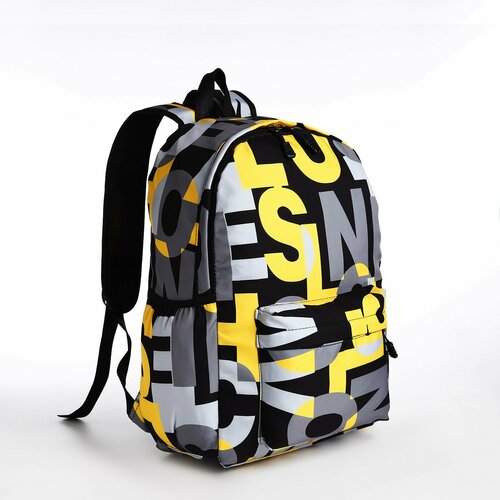 Рюкзак школьный из текстиля на молнии, 3 кармана, цвет жёлтый