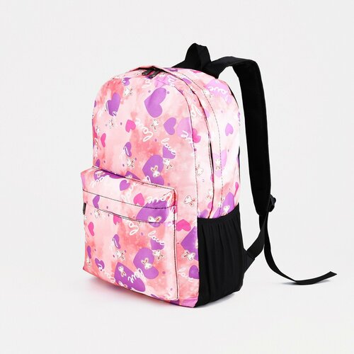 Рюкзак на молнии, 3 наружных кармана, цвет розовый/чёрный