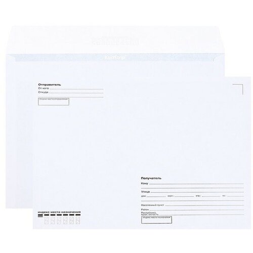 Набор конвертов С4 229 х 324 мм, поле "Кому-куда", без окна, отрывная лента, внутренняя запечатка, 90 г/м2, 25 штук