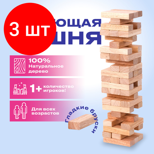 Комплект 3 шт, Игра настольная "башня", 48 деревянных блоков, золотая сказка, 662294