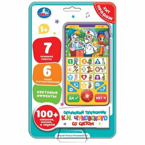 Обучающий телефон Чуковский К. 100 стихов, песен, звуков. блист. бат. Умка в кор.120шт