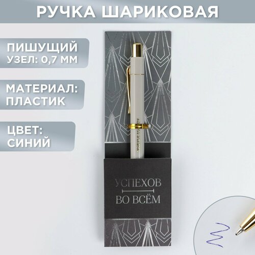 Ручка пластик «Успехов во всем», с тиснением на корпусе, синяя паста, 0,7 мм