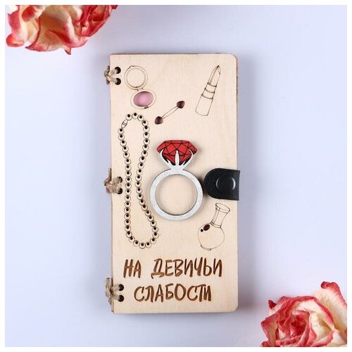 Конверт деревянный "На девичьи слабости" ручная работа, светлый, 16,5х8х0,9см