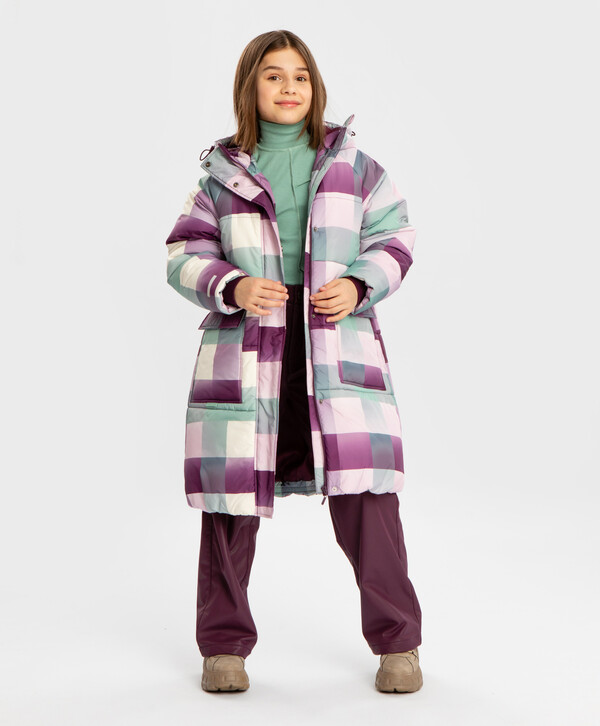 Пальто зимнее непромокаемоеи манжетами-митенками мультицвет Button Blue, 152, 224BBGA4601