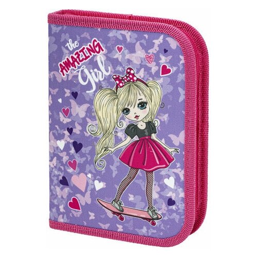 Пенал пифагор, 1 отделение 1 откидная планка, полиэстер, 19 13 см, Amazing Girl , 271518 В заказе: 1 шт.