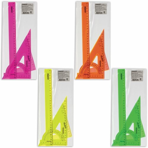 Пифагор Набор чертежный 4 предмета (210624), желтый/оранжевый/зеленый/розовый