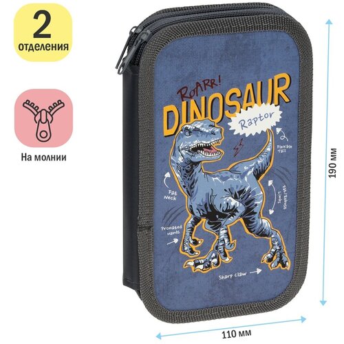 Пенал OfficeSpace "ArtSpace", Raptor, 2 отделения, 190х110 мм, ламинированный картон, софт-тач (ПТ2_49705)