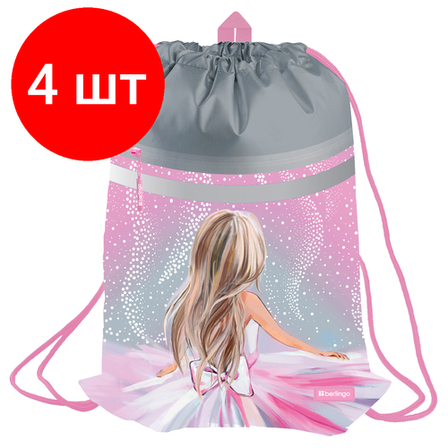Комплект 4 шт, Мешок для обуви 1 отделение Berlingo "Beautiful dream", 340*460мм, вентиляционная сеточка, светоотражающая лента, карман на молнии