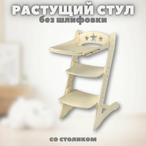 Детский растущий стул со столиком для кормления "Берёзка" без шлифовки со звёздами