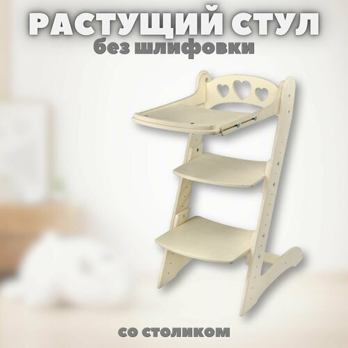 Детский растущий стул со столиком для кормления "Берёзка" без шлифовки с сердечком