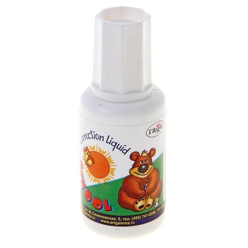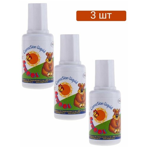 Корректирующая жидкость 20мл, Школьник, на водной основе, кисточка 3 штуки
