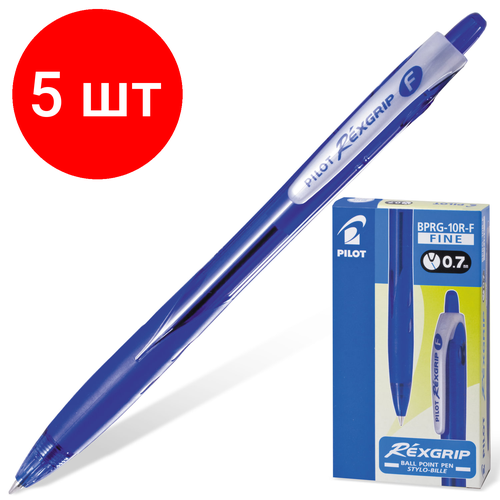 Комплект 5 шт, Ручка шариковая масляная автоматическая PILOT "Rex Grip", синяя, узел 0.7 мм, линия письма 0.32 мм, BPRG-10R-F