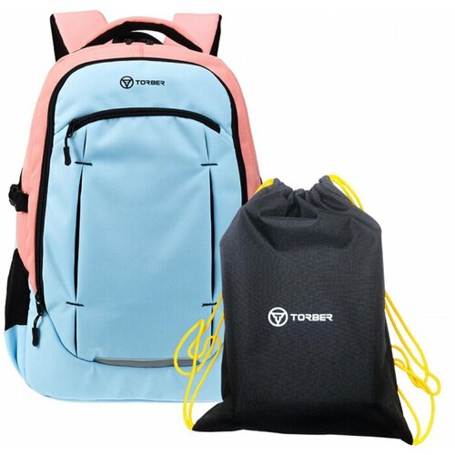 TORBER T9355-22-PNK-BLU-M Рюкзак torber class x, розово-голубой, 46 x 32 x 18 см мешок для сменной обуви в подарок!
