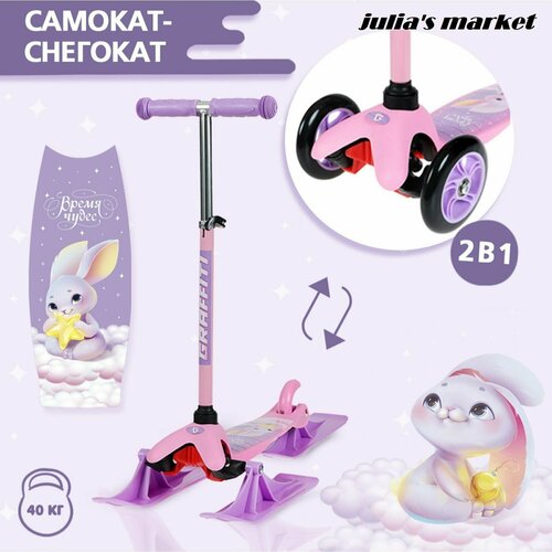 Самокат-снегокат 2 в 1 GRAFFITI "Девочка", цвет розовый, бирюзовый