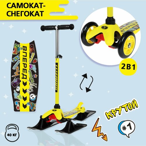 GRAFFITI Самокат-снегокат 2 в 1 GRAFFITI, трюковой, цвет жёлтый
