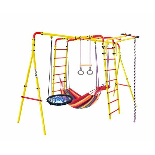 Комплектация:основа - металлическая шведская стенка с турником,гимнастические кольца,канат,веревочная лестница,баскетбольный щит с мячомХарактеристики: мячомХарактеристики:Конструкция: сборная-разборная