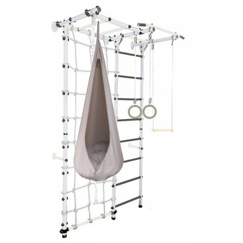 Спортивно-игровой комплекс ЮНЫЙ АТЛЕТ Рукоход с гамаком и сеткой, серый/белый